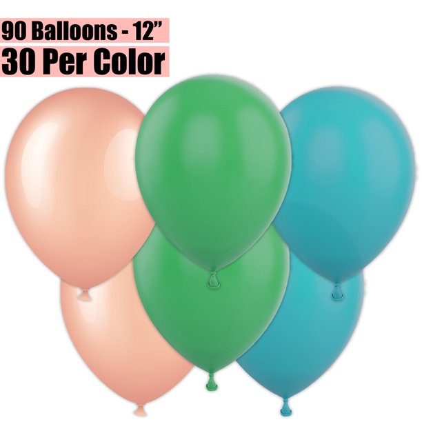 12 Inch Party Balloons 90 Count Metallic Rose Gold Jade Green Teal 30 Per Color Helium Quality Bulk Latex Balloons In 3 Assorted Colors For Birthdays Holidays Celebrations And More Walmart Com